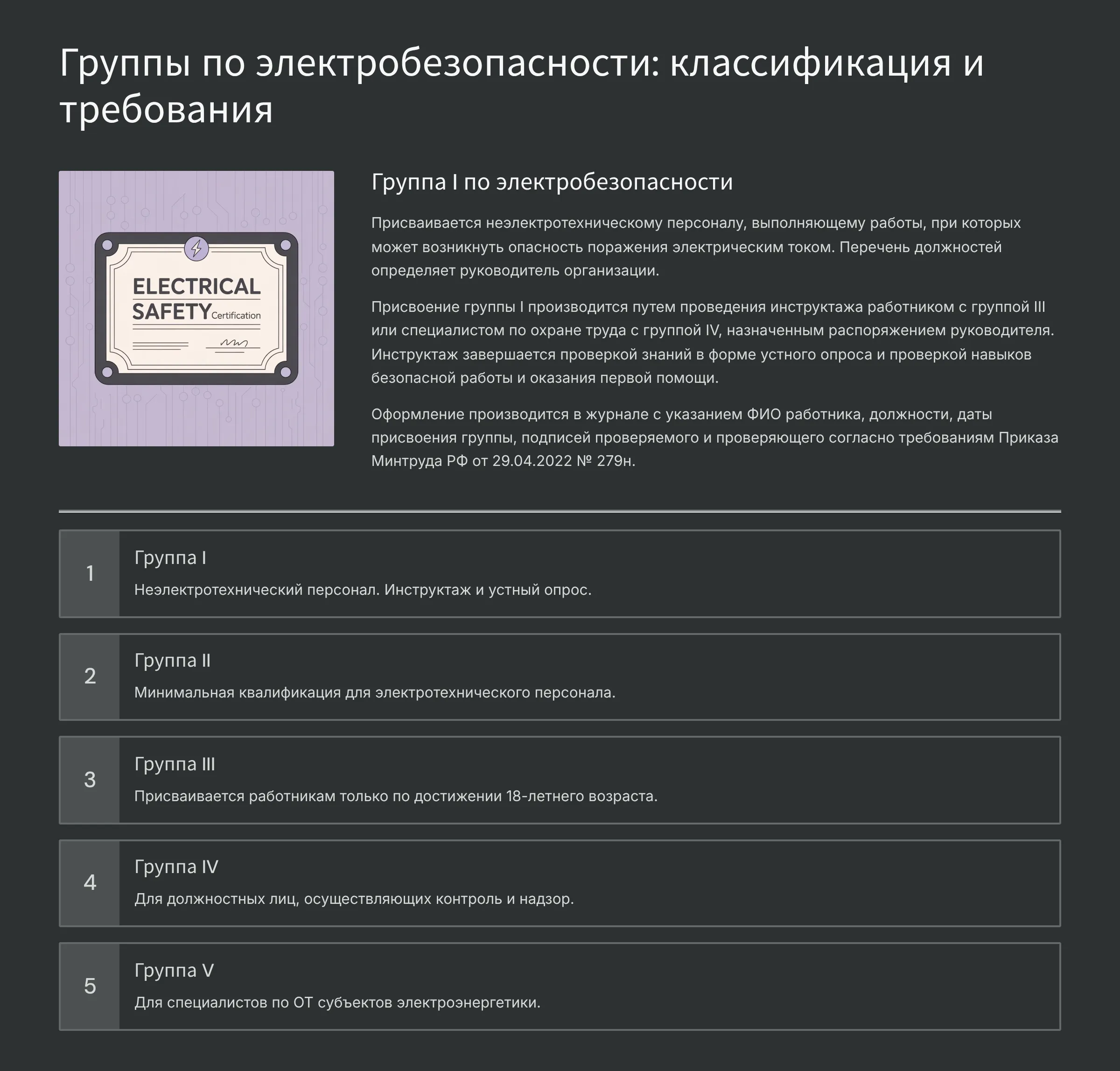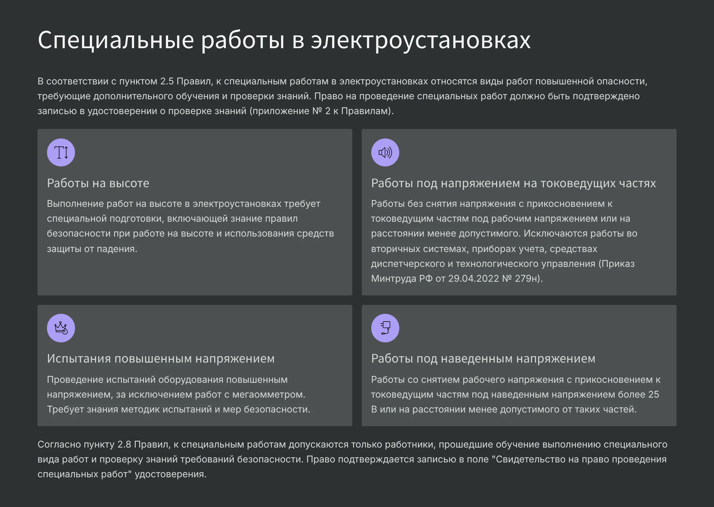Требования к работникам, допускаемым к выполнению работ в электроустановках
