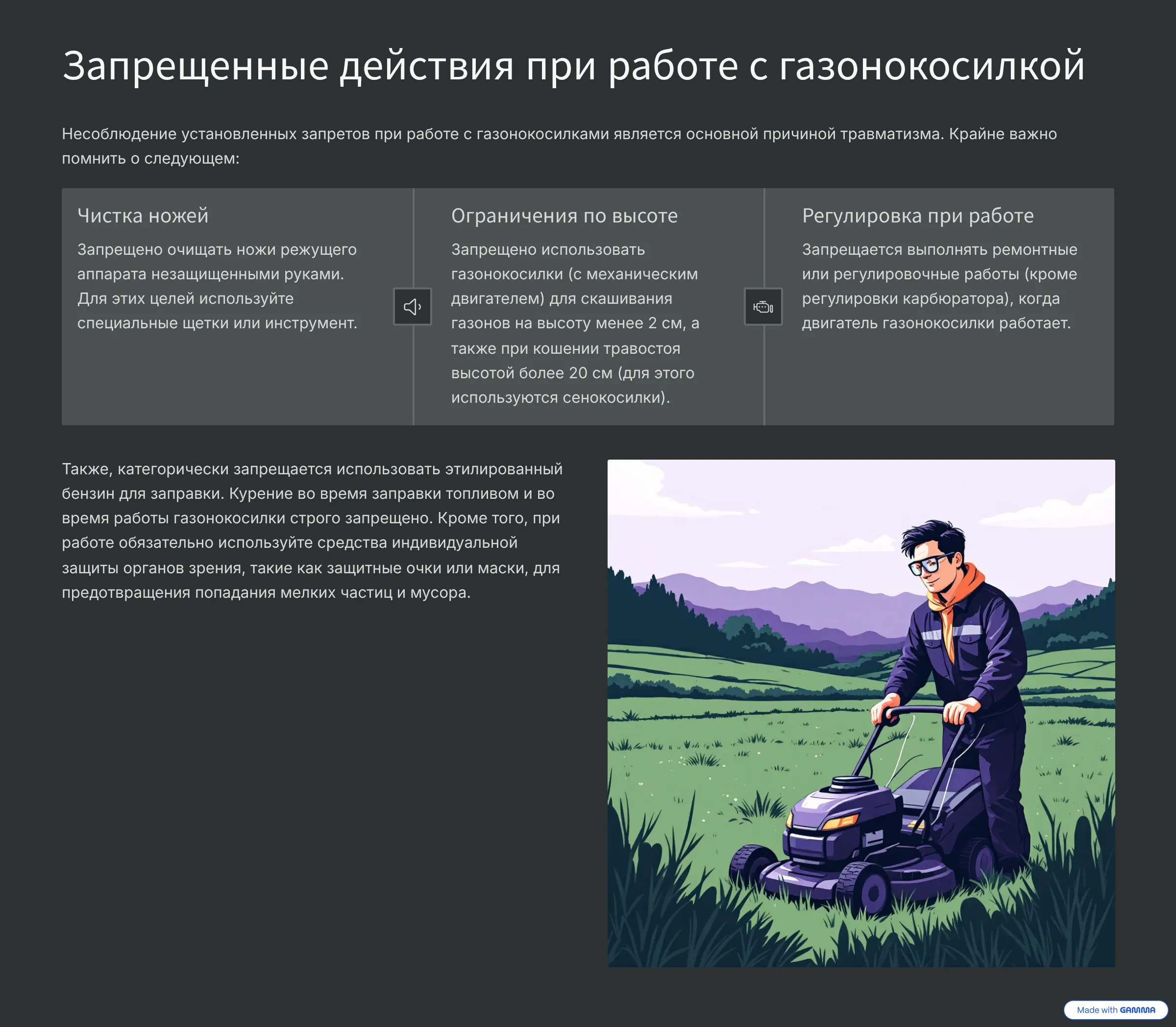 Требования охраны труда при кошении газонов и работе с деревьями