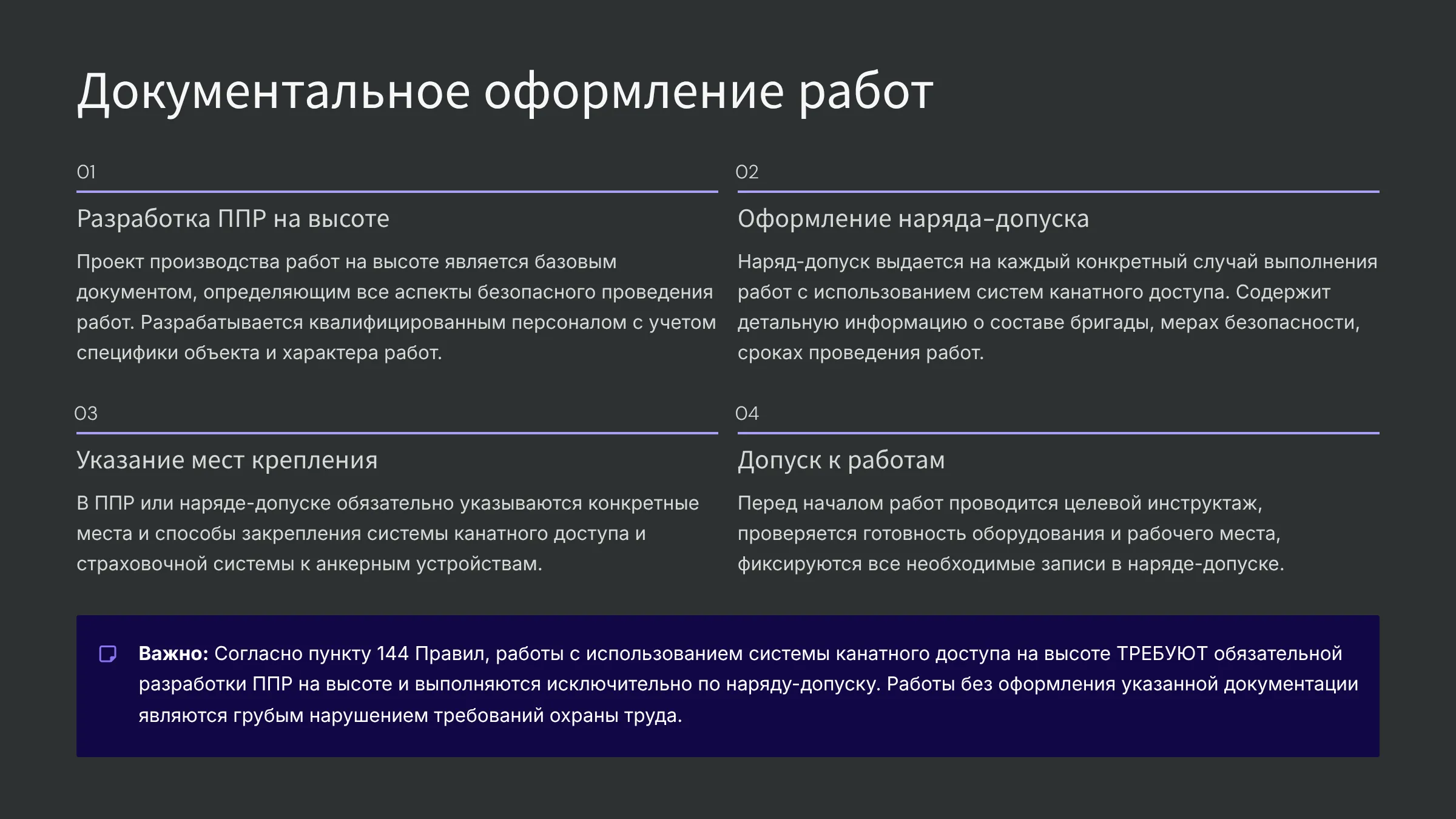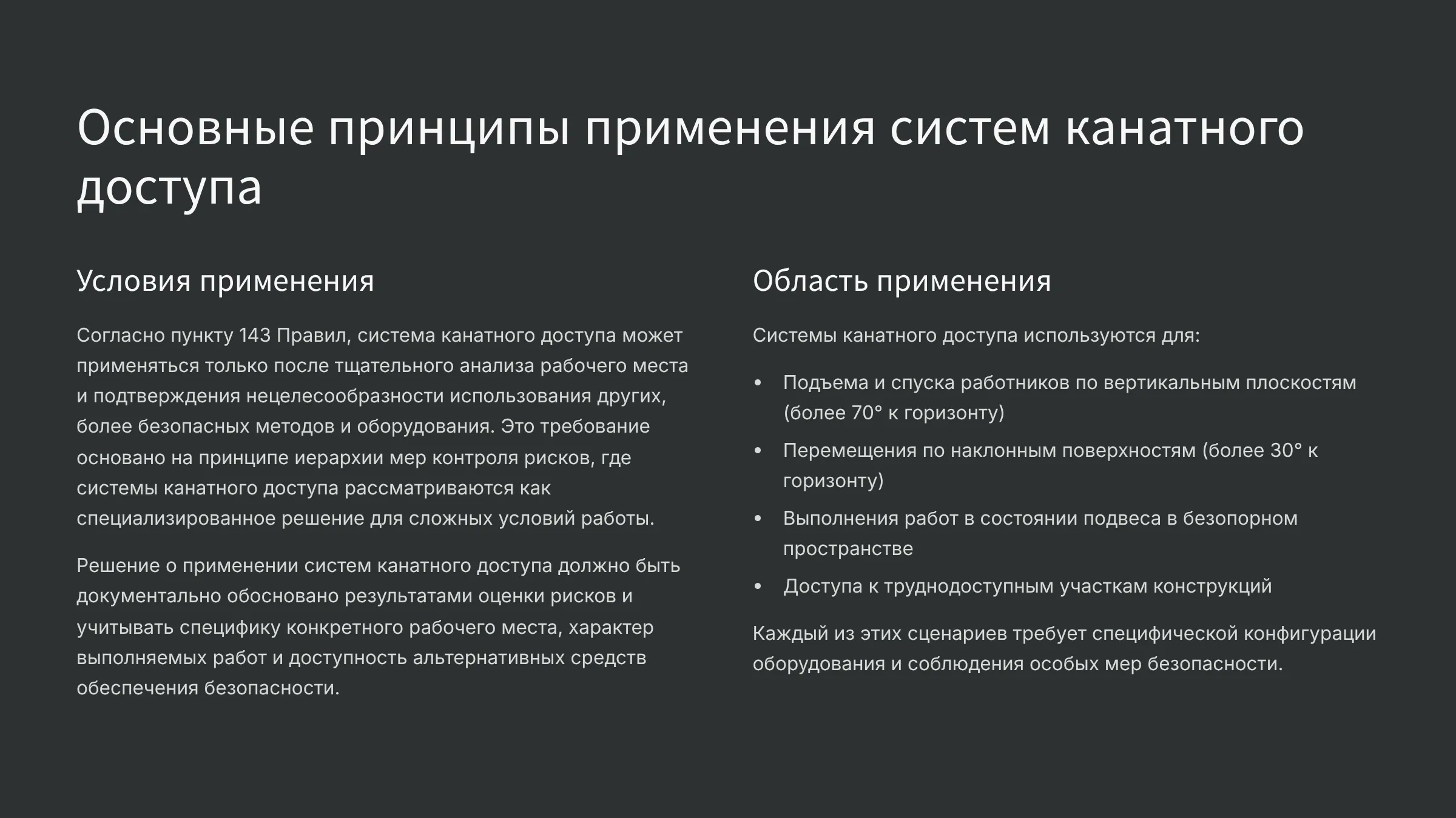 Требования по охране труда при применении систем канатного доступа