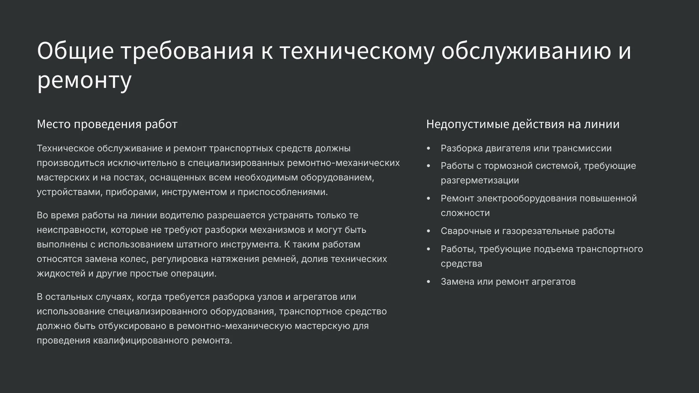 Требования охраны при техническом обслуживании и ремонте ТС